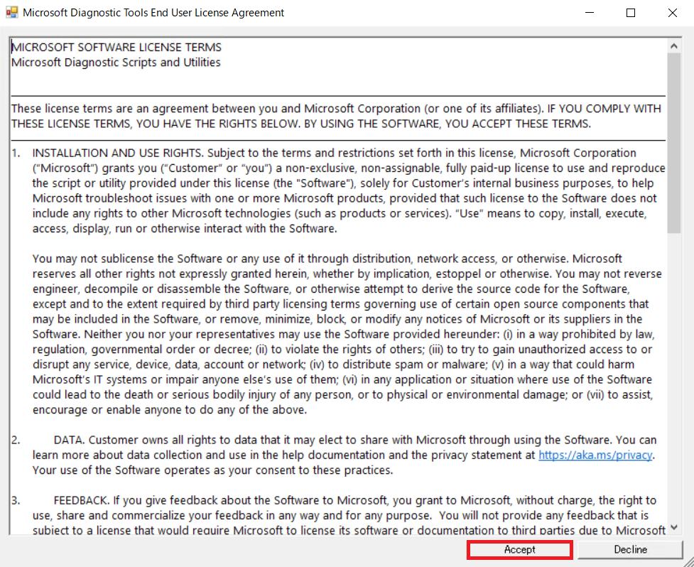 使用許諾の確認が以下のように表示される場合は内容をご承諾頂いた上で [Accept] ボタンをクリックし同意頂きますようお願い致します。