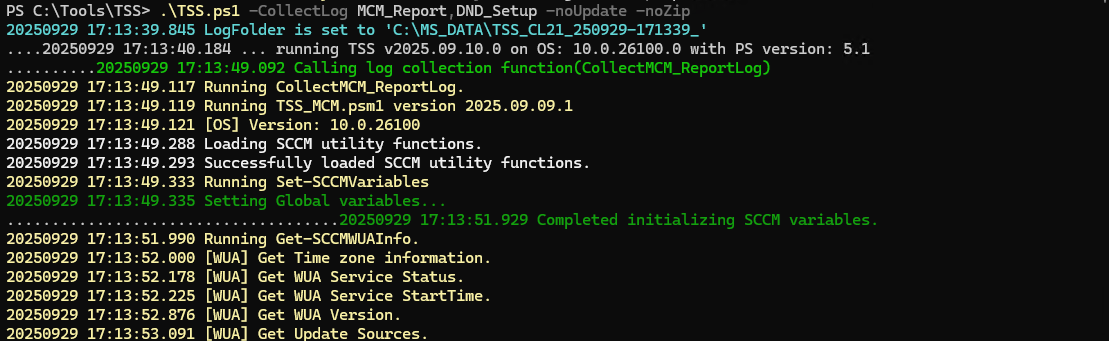 1 | .\TSS.ps1 -CollectLog MCM_Report,DND_Setup -noUpdate -noZip |